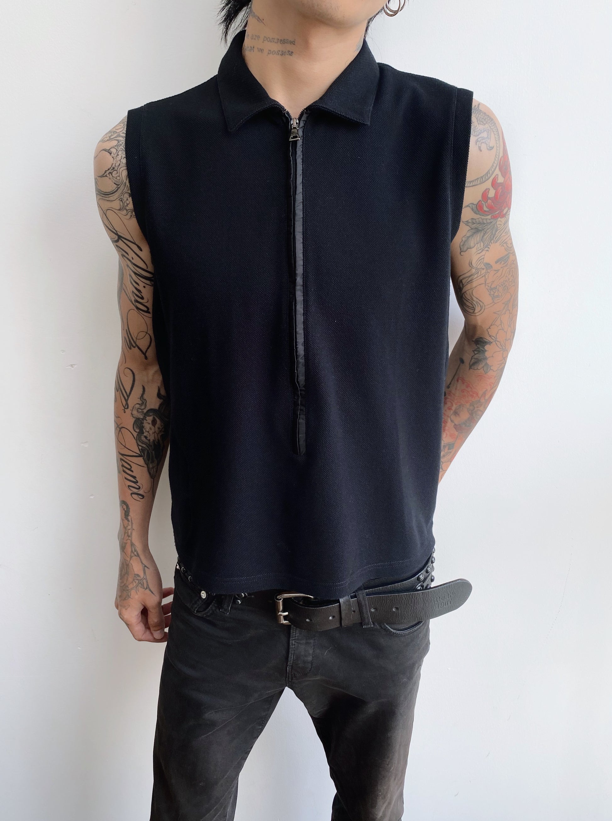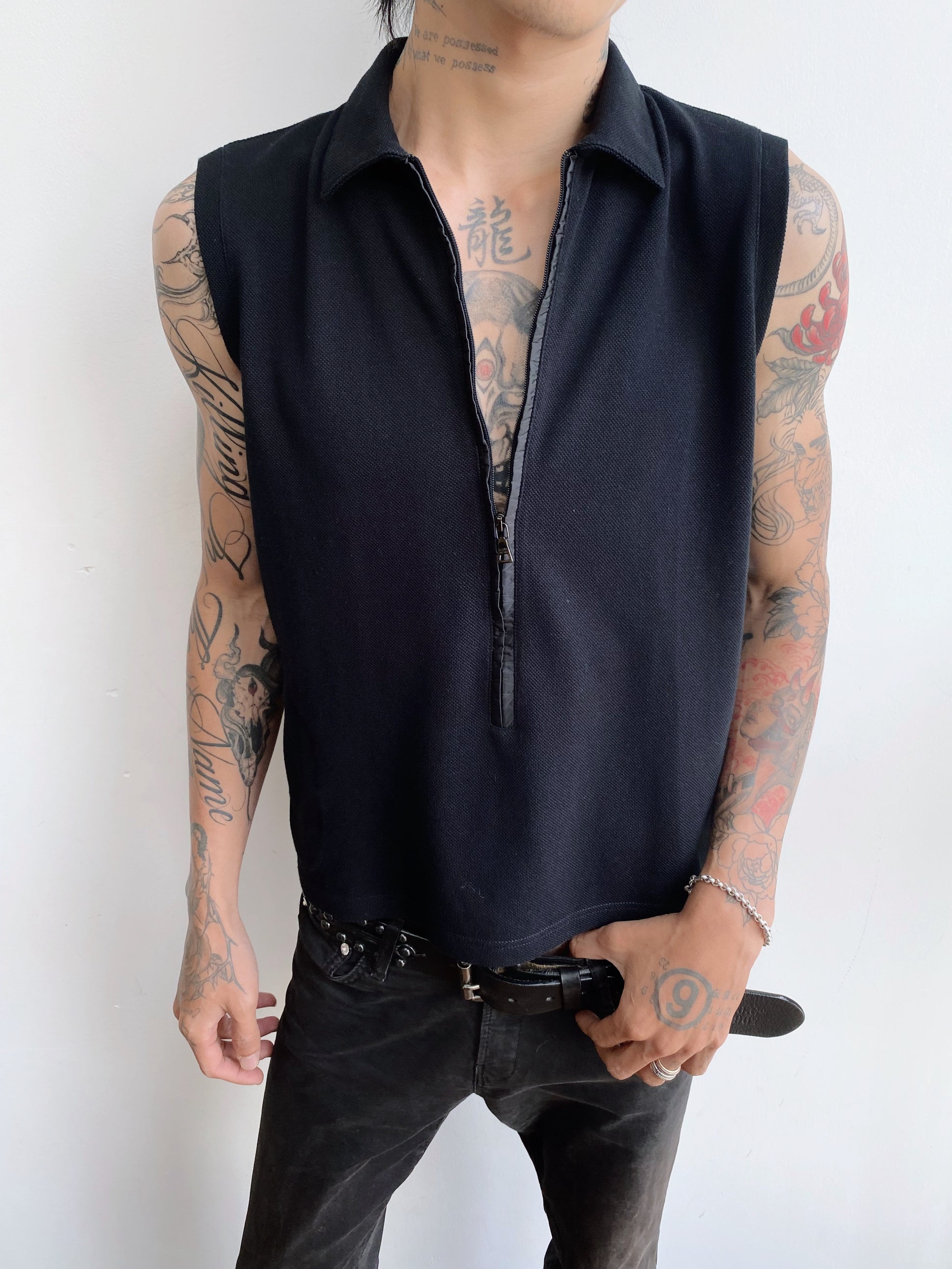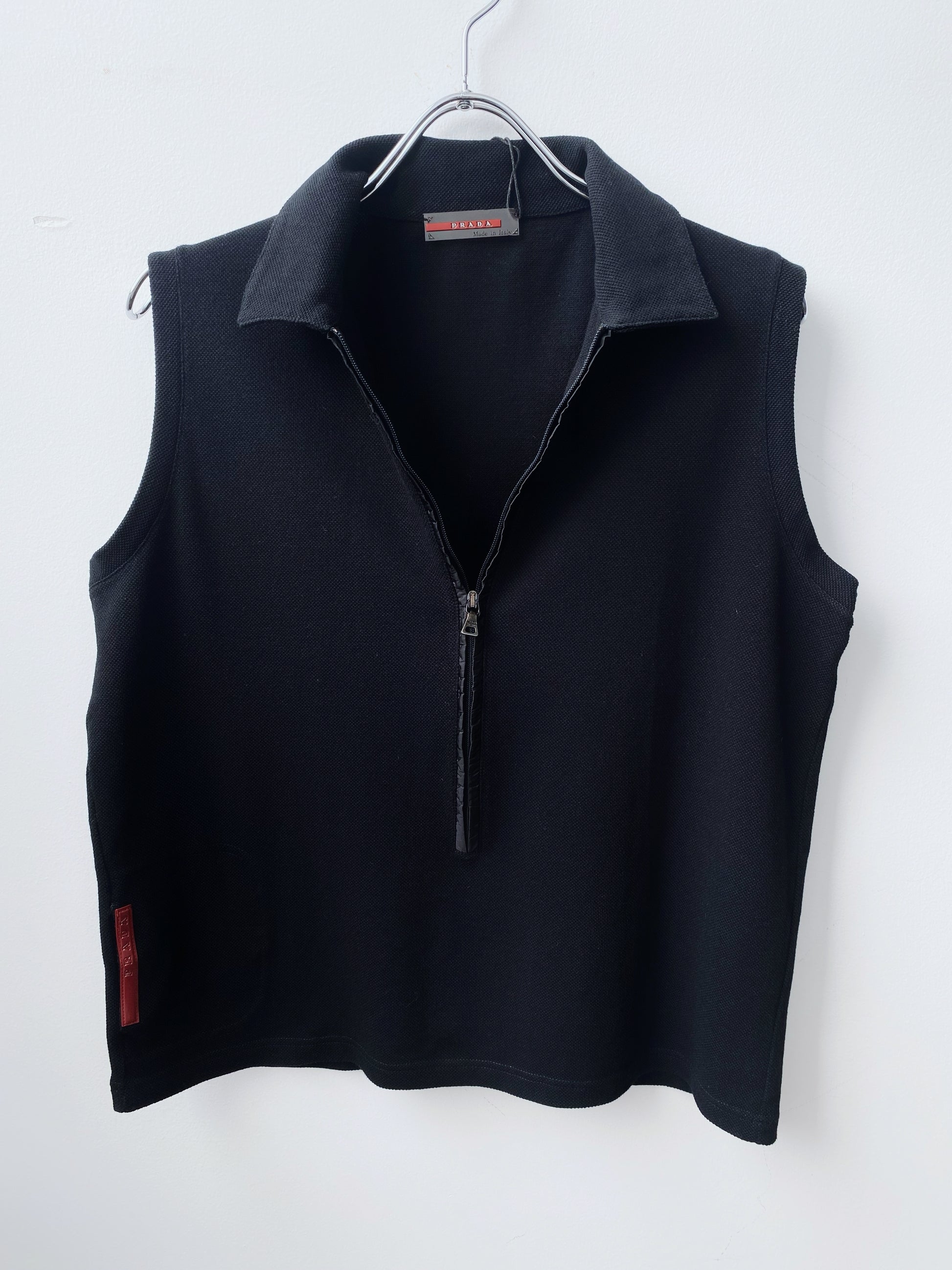 Prada — Sleeveless Polo Zip Top.